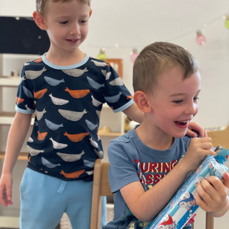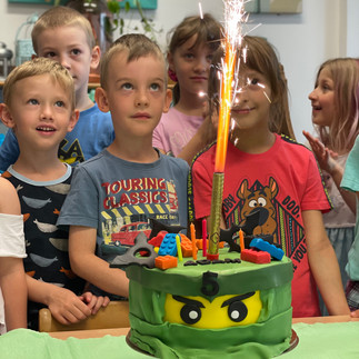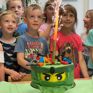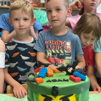 Moc moc děkujeme všem rodičům a dětem za krásné dárečky, Áďa má do konce prázdnin si s čím hrát, každý týden si vybere jeden nový z tašky, jsou fakt parádní :) A také chci moc poděkovat vedení školky i všem učitelům za krásnou oslavu, nádherný dort podle Áďových představ (dokonce tam byly i borůvky v krému, co si navymýšlel:) Jste skvělí!!!!!