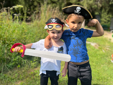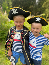 Ahoj Šimonku a Lukášku, viděli jsme zase dalších spoustu fotek, jak jste pekli buřty, chodili v pirátském oblečení, taky jste tam měli krásné víly. Pirátské loďky vám odpluly určitě hodně daleko. A dnes už odplouváte vy, šťastnou cestu přejeme a doma vás čeká překvapení, s námi se uvidíte také dnes, ale v oci, přijdeme vám dát pusinky. máma a táta