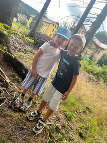 Ahoj Šimi a Luky, viděli jsme krásné fotky, teda vás na kempu je hodně a tak jste pořádná parta, to je dobře , že jste jeli jako už velcí školáci , můžete pomáhat učitelům. Na campu je připraveno spousta dobrodružství a tak si je pěkně užijte a budete nám doma vyprávět. Pusa letí od mamky a taťky